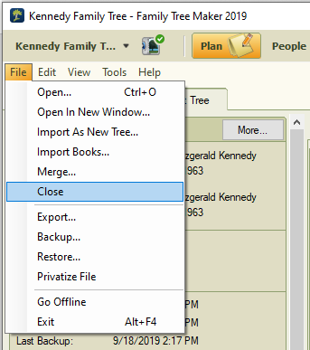 Note: As a best practice for protecting your family tree, we recommend using TreeVault, which saves an exact copy of your tree into Family Tree Maker’s secure cloud space updated in real-time as you work. It's the best way to recover a lost or damaged tree, and lets you view your tree any time and any place with the FTM Connect™ app on your smartphone or tablet. Learn more here at www.treevault.com or click here to get started.