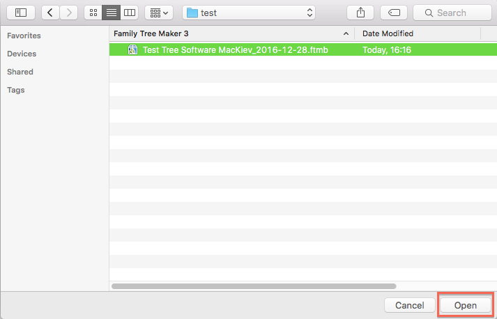 Restoring a Tree from a Backup File in Family Tree Maker for Mac